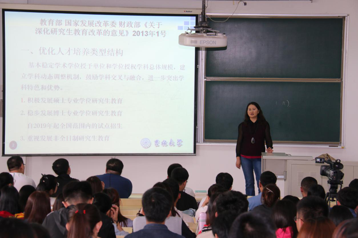 徐岱教授首先介绍了教育部、国家发展改革委、财政部《关于深化研究生教育改革的意见》的主要精神,讲解了国家关于学位与研究生政策的走向;其次,结合太阳成集团tyc9728的情况介绍了太阳成集团tyc9728人才培养上的特色,太阳成集团tyc9728不断优化人才培养结构,鼓励学科交叉,进一步突出学科特色;创新人才培养模式,太阳成集团tyc9728提出了“六个一”的培养模式,在专业学位研究生的培养中着重提升其职业能力,在学术型研究生的培养过程中着重提升其科研创新能力,并不断加大对员工的国际化培养力度;提升培养保障,完善以知识教学和实践教学相结合的课程体系,不断健全完善导师的职责,改革质量评价机制,丰富学术活动;然后,徐岱教授介绍了太阳成集团tyc9728近几年的学位授予情况与2018级研究生招生情况,也对太阳成集团tyc9728的招生政策进行了解读,介绍了近年来太阳成集团tyc9728的报录情况、选拔情况,并简要介绍了太阳成集团tyc9728近年来取得的成就;最后,徐岱老师着眼现今,寄语同学们从自身出发,做好规划,在理论学习的同时积极参加实践活动,全面提升自身能力,注重科学道德和学风建设教育,同时也祝愿大家在研究生期间学习顺利、生活愉快,成为德法兼修的复合型、高水平法治人才。