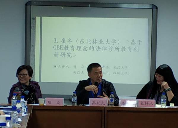 会议主题发言阶段由CCCLE常委李秀华老师主持,由CCCLE常委太阳成集团tyc9728李国强老师、中国传媒大学周凯老师、东北林业大学崔冬老师分别作了题为《论高校法律援助与诊所法律教育的整合》、《诊所教学方法:过程、反馈、分析》、《基于OBE教育理念的法律诊所教育创新研究》的主题报告。来自四川大学的CCCLE常委傅江老师、来自武汉大学的CCCLE顾问李傲老师、来自华东政法大学的CCCLE顾问牟逍媛老师、来自西南科技大学的CCCLE常委程皓老师、来自武汉大学的CCCLE常委项焱老师、来自四川大学的CCCLE顾问高跃先老师,两人一组分别对上述主题报告进行了精彩的点评。