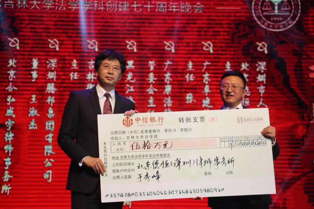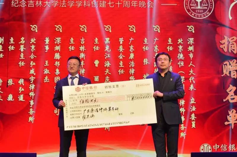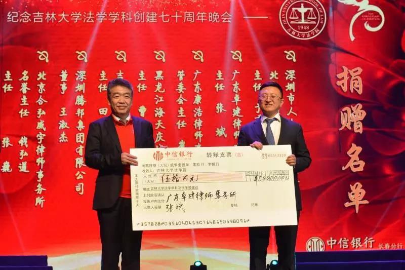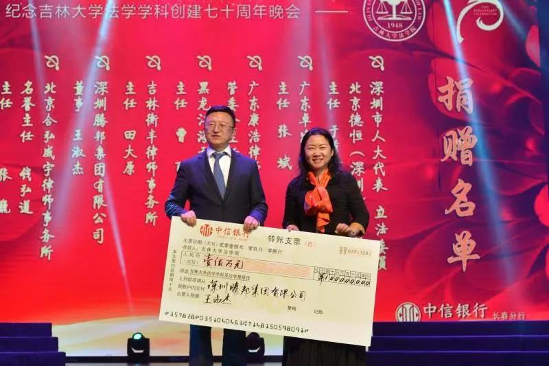 70年来,吉大法学培养了一批又一批优秀的法律人才,他们走出母校,在社会的大熔炉中历练、成长。在此70周年庆典之际,他们又回到了母校,为公司的发展建设献出自己的力量:深圳市人大代表、立法委员、北京德恒(深圳)律师事务所主任:于秀峰个人捐赠50万元;广东卓建律师事务所捐赠50万元;广东康浩律师事务所捐赠50万元;黑龙江海天庆城律师事务所捐赠50万元;吉林衡丰律师事务所捐赠50万元;深圳腾邦集团有限公司捐赠100万元;北京合弘威宇律师事务所捐赠100万元;北京金杜律师事务所捐赠800万元。感谢各位员工对吉大太阳成集团tyc9728教育事业的关注和帮助。太阳成集团tyc9728的辉煌离不开一代代人的努力。作为太阳成集团tyc9728的传统学科,吉大法学在“双一流学科”建设中保持着良好的发展势头,在吉大员工的助力下吉大太阳成集团tyc9728必定会不忘初心,砥砺前行!