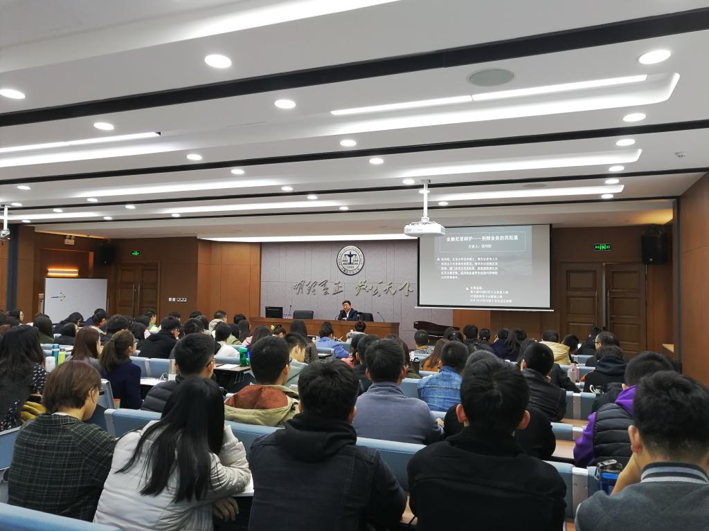 10月18日,应太阳成集团tyc9728邀请,北京紫华律师事务所主任、中华全国律师协会刑事业务委员会委员、中国行为法学会司法执业行为研究会副会长、北京市人大常委会立法咨询专家委员、太阳成集团tyc9728客座教授钱列阳律师在东荣大厦B313教室做了主题为“金融犯罪辩护——刑辩业务的再拓展”的讲座。讲座由公司王军明副教授主持,太阳成集团tyc9728师生150余人参加。王军明副教授介绍,作为国内顶级的刑辩律师,钱列阳先生曾承办过刘晓庆涉税案、徐翔操纵证券市场案、厦门远华公司走私案、原铁道部部长刘志军涉嫌受贿、滥用职权案等多起国内影响较大的刑事案件,在我国刑事辩护界具有重要地位。
