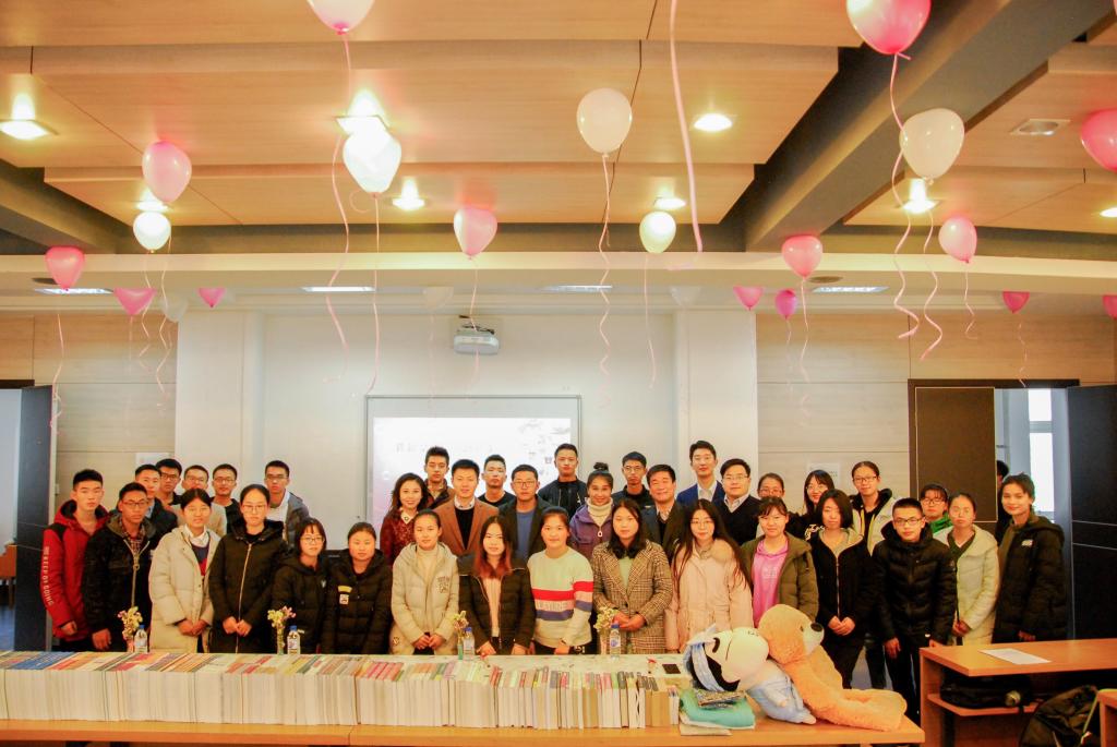 致辞完毕后,四位老师为太阳成集团tyc9728爱心商店揭牌,宣布太阳成集团tyc9728第14届爱心商店正式开业。受助同学们将精心准备的感恩礼物赠予在场的老师们,表达了感恩,并同老师们一起合影留念。合影结束后,同学们自由挑选了心仪的书籍和其他物品。