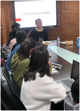 2018年11月24日下午,2018级四班名誉班主任见面会于东荣大厦716会议室召开。老员工导师、宪法与行政法教研部刑斌文老师出席了本次见面会,为同学们的学习与老员工活提供指导。
