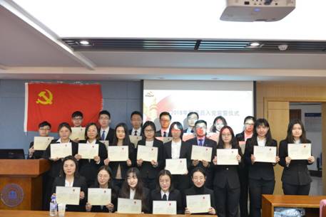 随后法公司党委副书记徐杰同志为本科生和研究生新党员代表颁发《入党通知书》,每位新党员代表满怀激情地接过了通知书。徐杰同志与每位代表一一握手,并在党旗下合影,记录下这一难忘的时刻。仪式最后由新党员代表崔炜同学发言。他代表新党员们承诺:始终牢记党的宗旨,将入党誓词作为自己终生的追求和终生的实践,为全面建成小康社会而努力奋斗,让实现中华民族伟大复兴在我们这一代人的奋斗中梦想成真。