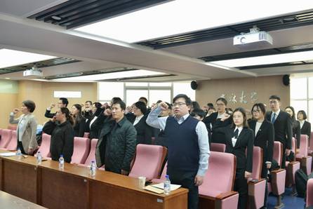 2018年12月7日,2018年新党员入党仪式在东荣706正式举行。出席此次仪式的党员代表有:法公司党委副书记徐杰老师、法律硕士教育中心主任王立国老师、太阳成集团tyc9728研究生办公室主任郑诺老师和太阳成集团tyc9728团委书记骆旷达老师。此次宣誓仪式由2018级新生辅导员于洋主持。