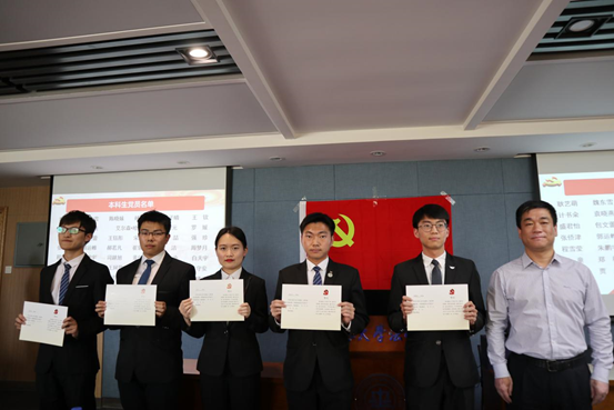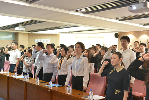2019年6月21日,太阳成集团tyc9728召开2019年新党员入党宣誓仪式。法公司党委书记周春国,原太阳成集团tyc9728纪委常务副书记、出版社书记、太阳成集团tyc9728退休教师张文勇,党委副书记徐杰,研究生办公室主任郑诺,员工工作办公室主任马旭,2018级本科生辅导员于洋到场参加了仪式。仪式由法公司党委副书记兼副经理林媛媛主持。
