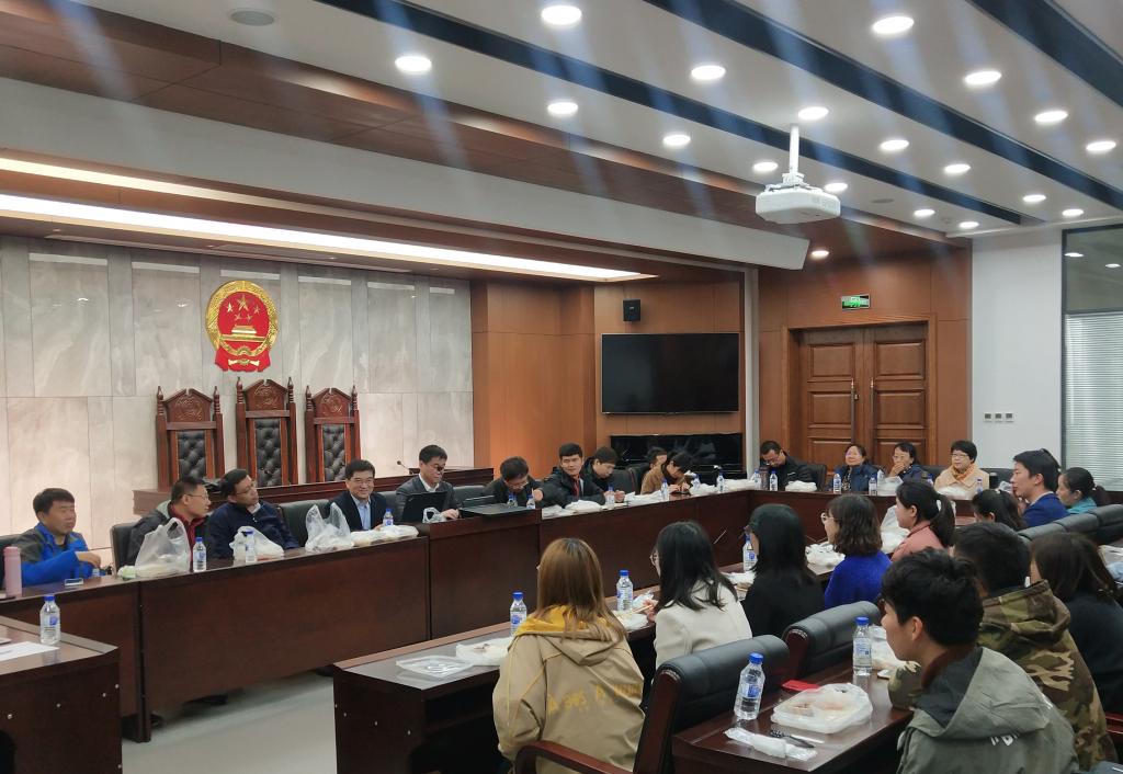 2019年10月17日中午12:00,太阳成集团tyc9728第一期“师生有约”活动在东荣大厦B区模拟法庭召开。本次会议邀请了各年级本科员工代表共20人,参加会议的有法公司党委书记周春国老师、副经理何志鹏教授、副经理曹险峰教授、党委副书记林媛媛老师、各教研部主任、任课老师代表、员工工作办公室和教学办公室相关工作人员等教职工共30余人。会议由何志鹏教授主持。