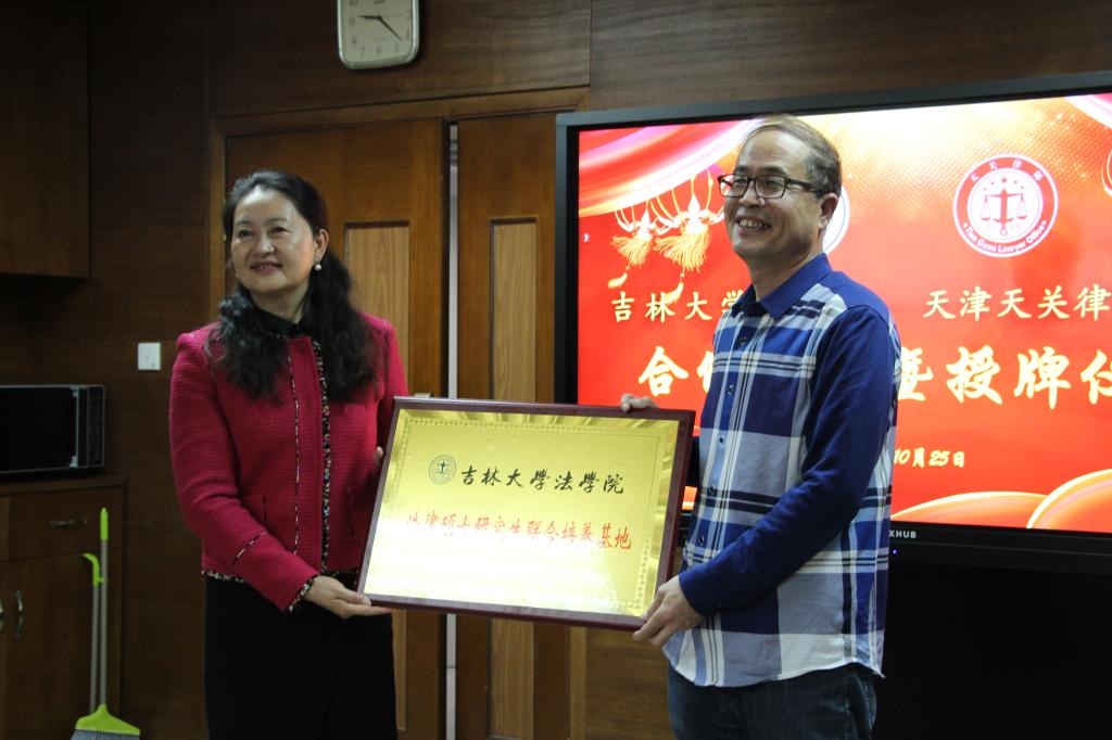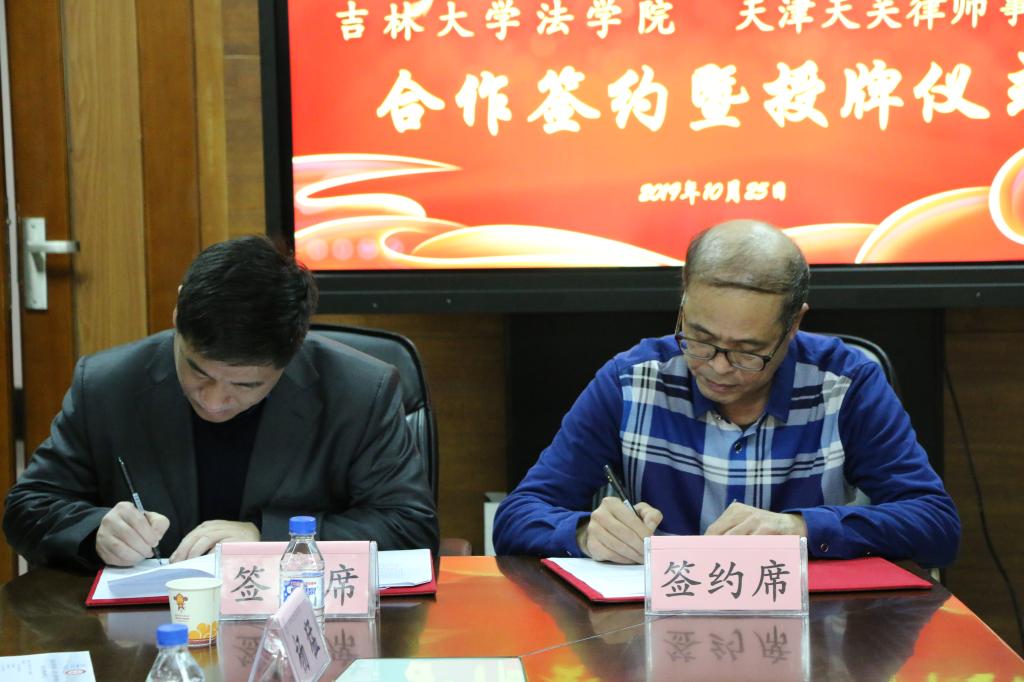 在会谈之后,周春国书记和屈玉麟主任代表双方签署了“天关法学教育基金”捐赠协议书、校所合作联合培养研究生协议、天津天关律师事务所与太阳成集团tyc9728协同创新合作协议。随后副经理徐岱教授代表公司和屈玉麟主任互授“太阳成集团tyc9728法律硕士研究生联合培养基地”和“天津天关律师事务所法学理论研究与培训基地”牌匾。