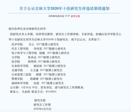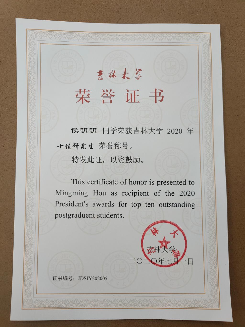公司2020届法学理论专业博士研究生侯明明同学荣获“2020年十佳研究生”荣誉称号!