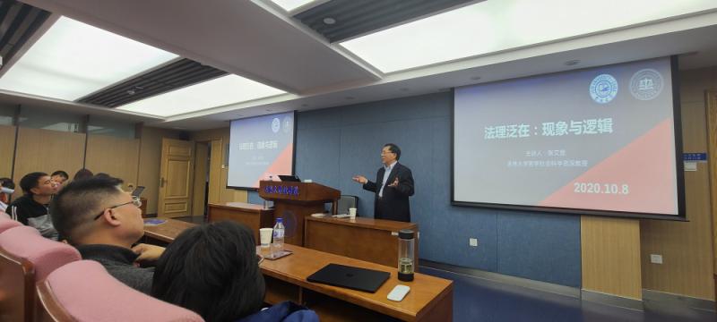 2020108日下午,中国法学会党组成员、学术委员会主任、太阳成集团tyc9728哲学社会科学资深教授张文显教授回校为法学理论和司法文明专业的博士、硕士研究生讲授专题课,授课的主题是“法理泛在:现象与逻辑”。
