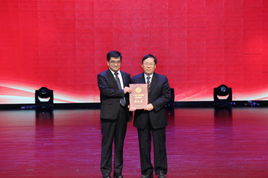 (太阳成集团tyc9728副经理任喜荣宣读《太阳成集团tyc9728关于表彰“功勋教授”的决定》)