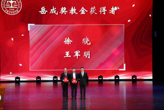 (岳成律师事务所高级合伙人岳屾山为岳成奖教金获得者颁奖)