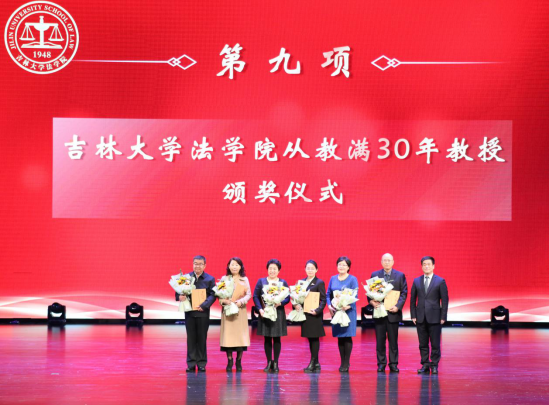 (法公司党委书记周春国为在院从教满30年的教授颁发荣誉证书)
