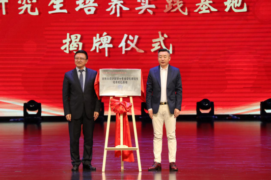 (副董事长蔡立东与长春把手科技有限公司创始人刘思铭为实践基地揭牌)