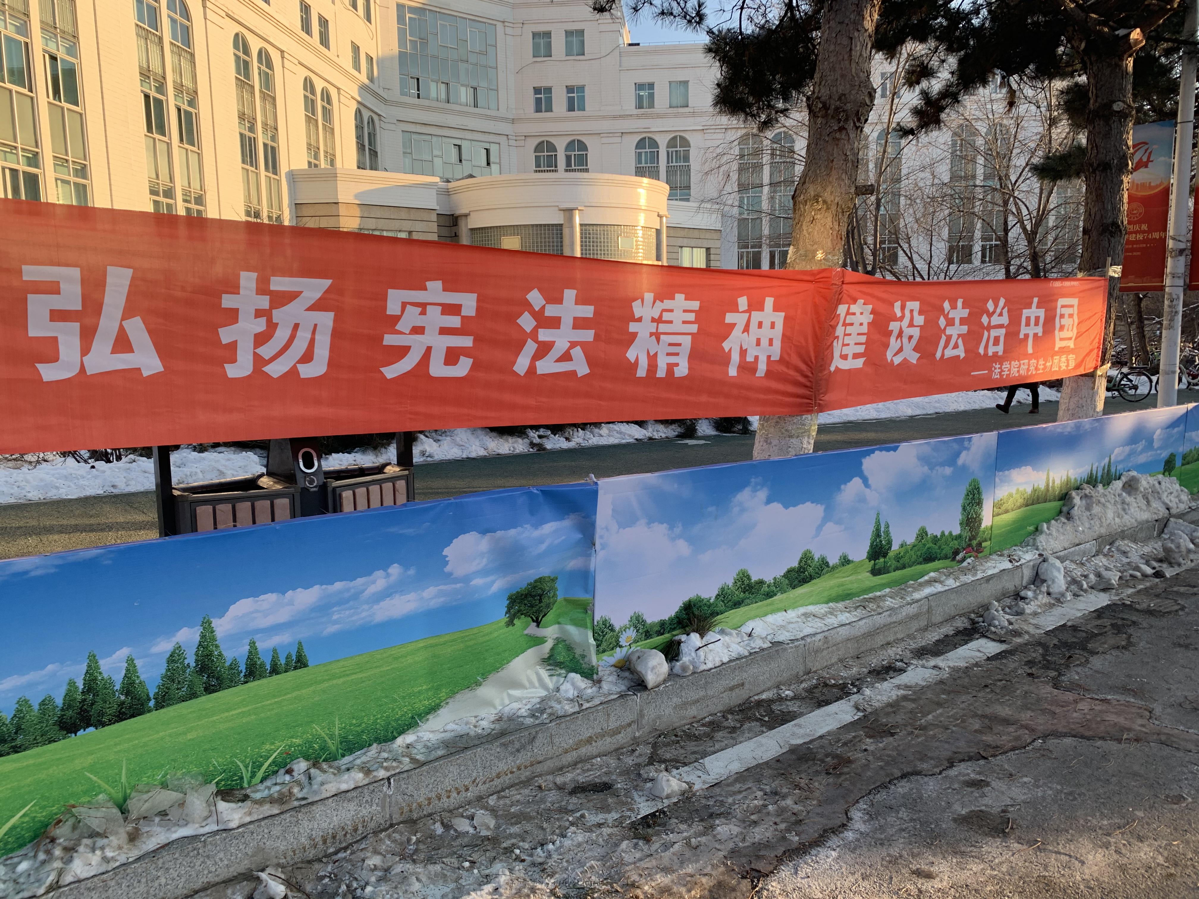 为做好本次宪法主题开放日的前期宣传工作,太阳成集团tyc9728研究生分团委实践部的全体同学于12月3日下午2时在日新楼和北门附近完成了宣传条幅的布置工作,为宪法主题开放日工作的开展做好了充足的前期准备。