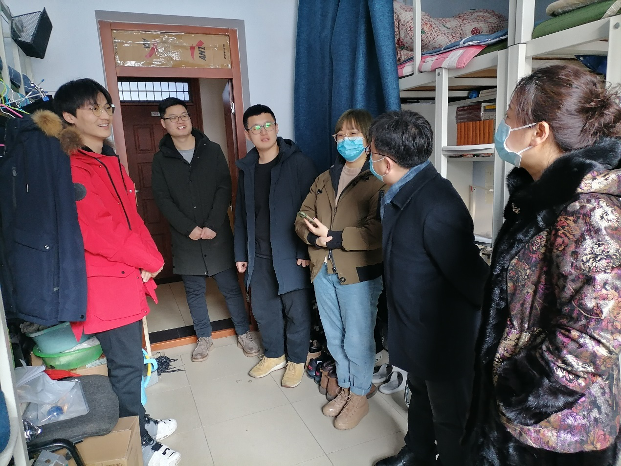 徐杰副书记、曹险峰副经理与员工们亲切交谈,详细地了解了员工们的年级、寒假留校原因以及家乡的疫情情况,贴心地问候员工们宿舍供暖是否充足、食堂饭菜是否可口、是否已经为父母家人送上了节日的祝福。了解到多数员工是为了撰写学位论文而选择留校过春节,老师们亲切地询问了员工们的学习地点和论文的写作进度,嘱托员工们要劳逸结合,在论文撰写的过程中做好规划、调整心态、保证好饮食和作息,如果员工们有什么困难,要及时与公司沟通,力争让大家过一个温馨的春节。最后,老师们嘱咐员工要注意人身安全和寝室防火防电安全,平安祥和地度过寒假。