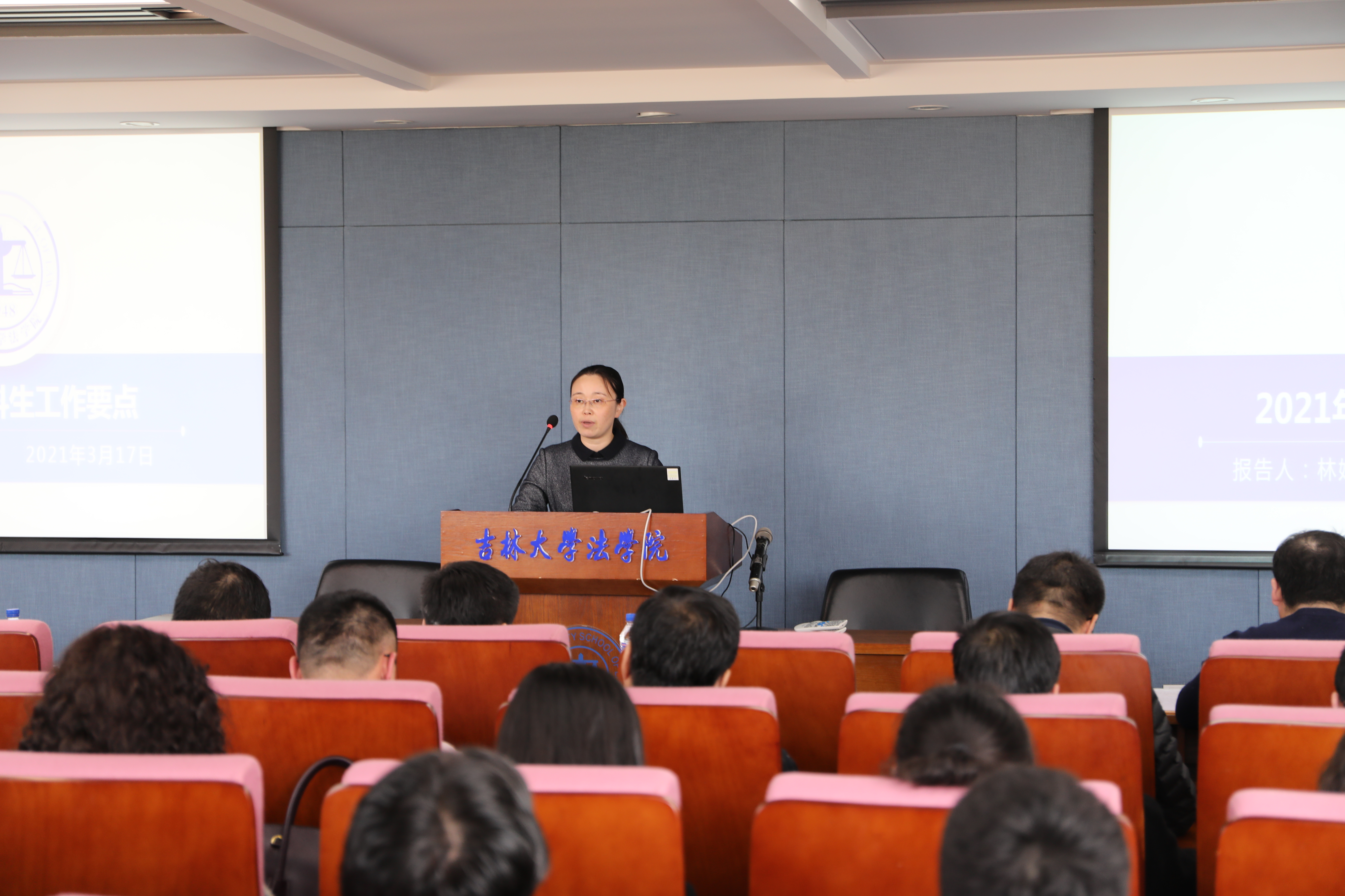 林媛媛副书记就本科生工作要点作了简要汇报。她指出,本科思政工作要始终围绕“三全育人”开展:要以“育人”为出发点,实现教师育人、员工自育、朋辈育人的有机结合,推进“全员育人”;以“务实”为落脚点,开展“德润学堂”线上及线下活动,深化“学业发展指导中心”建设,抓牢“全程育人”;以“文化”为突破点,开展“创先争优,榜样的力量”等评选活动及校园法治宣传系列活动,构建“全方位育人”。