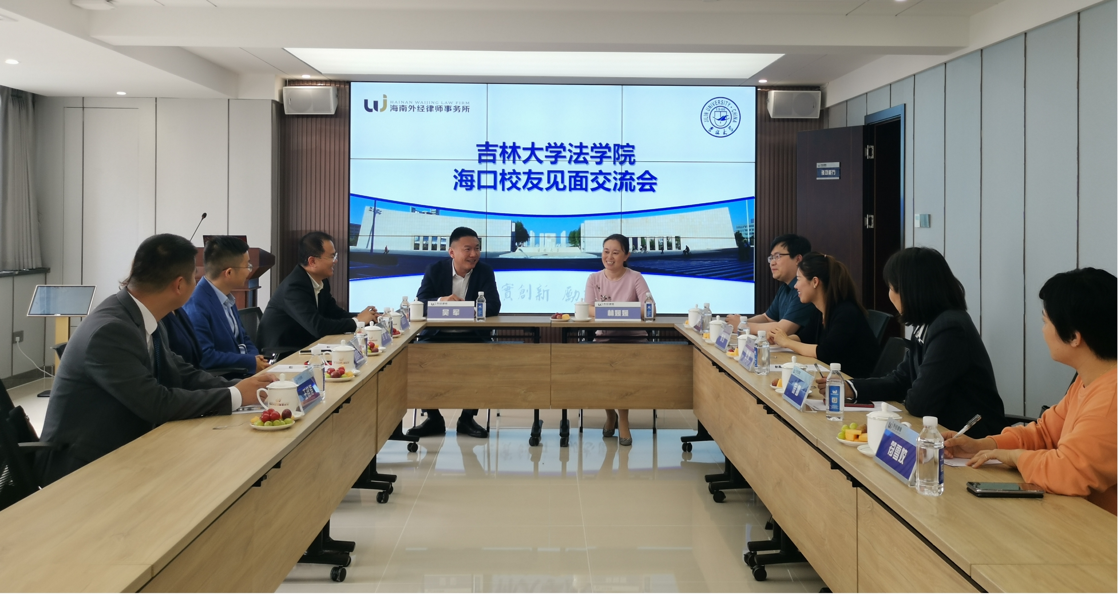 2021年3月25日下午,法公司党委副书记兼副经理林媛媛、团委书记骆旷达来到海南外经律师事务所,看望在海口发展的部分吉大法学员工。