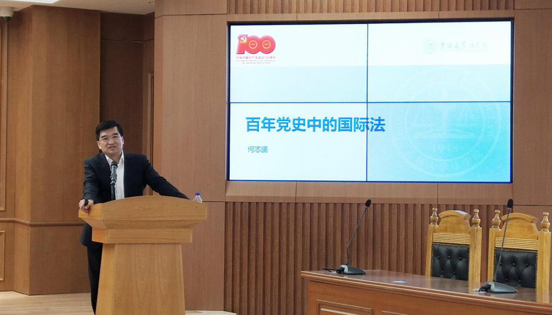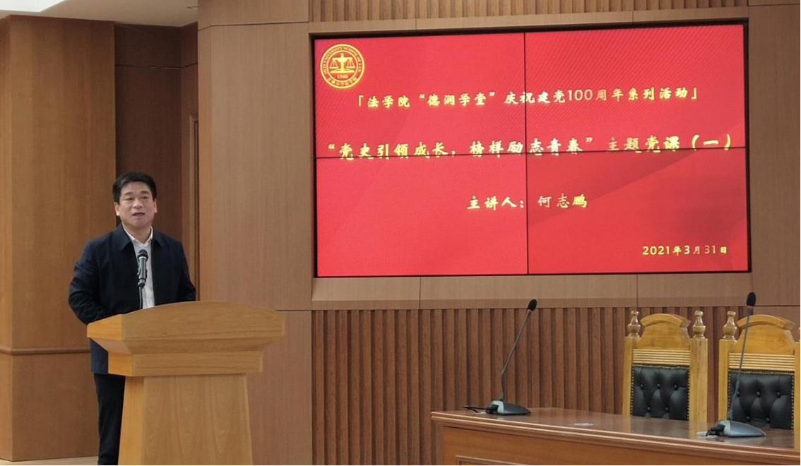 为深入学习习近平总书记关于“四史”的重要论述,贯彻落实习近平总书记在党史学习教育动员大会上的重要讲话精神,进一步加强青年员工党史基本素养,太阳成集团tyc9728“德润学堂”开展“党史引领成长,榜样励志青春”主题教育活动。2021年3月31日下午,太阳成集团tyc9728经理何志鹏为公司师生开展了以“百年党史中的国际法”为主题的党史学习教育讲座。法公司党委副书记张俊峰、理论法学研究中心主任兼副经理杜宴林、副经理王充、副经理温双阁、副经理刘晓林出席本次活动,活动由法公司党委书记周春国主持。
