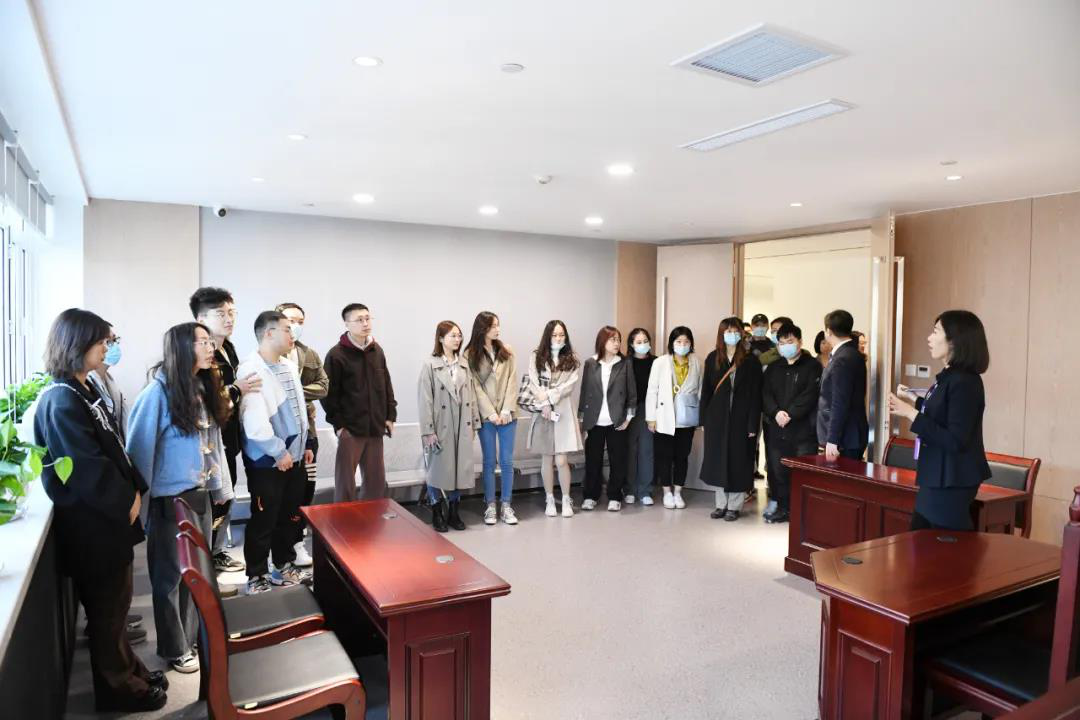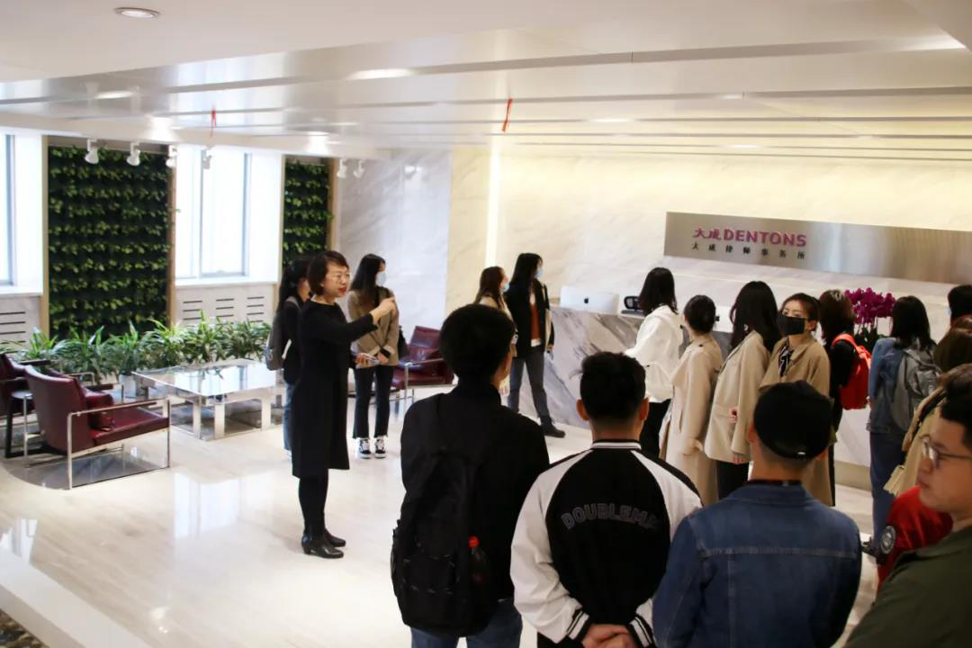 在正式活动前,同学们在大成律师事务所高级合伙人陈秀丽、高级顾问李悦佳的带领下,参观了事务所两层楼的客户接待、律师办公、休闲文化、模拟法庭等区域,并向同学们介绍了大成的历史背景和律所文化,然后同学们统一前往会议室观看律所宣传片,直观体验大成律师日常的工作、生活环境。
