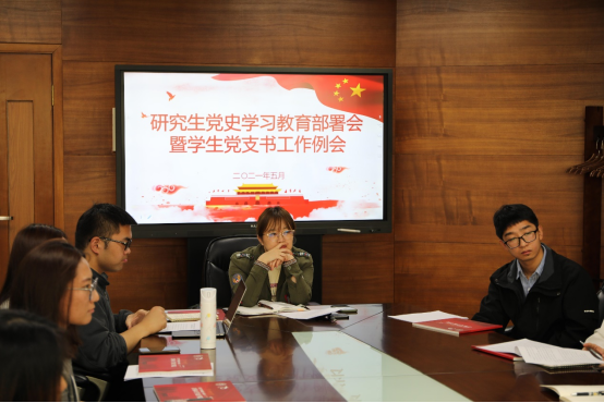 随后,张俊峰书记向各员工党支部书记传达了法公司党委关于开展党史学习教育的工作要求,对研究生党史学习教育系列活动及员工党支部组织生活进行了相关部署。他提出,高校基层党组织是培养未来党内中坚力量的摇篮,在党的百年历史交汇关键点上,研究生各党支部应严格按照公司、公司的部署要求完成各项党史学习教育任务,将党史学习教育融入员工党员发展和培养教育工作,发展党员时应坚持高标准严要求,讲规范、讲质量、讲方法、讲态度,为向党组织输送具有吉大精神的青年人才提供组织保障。