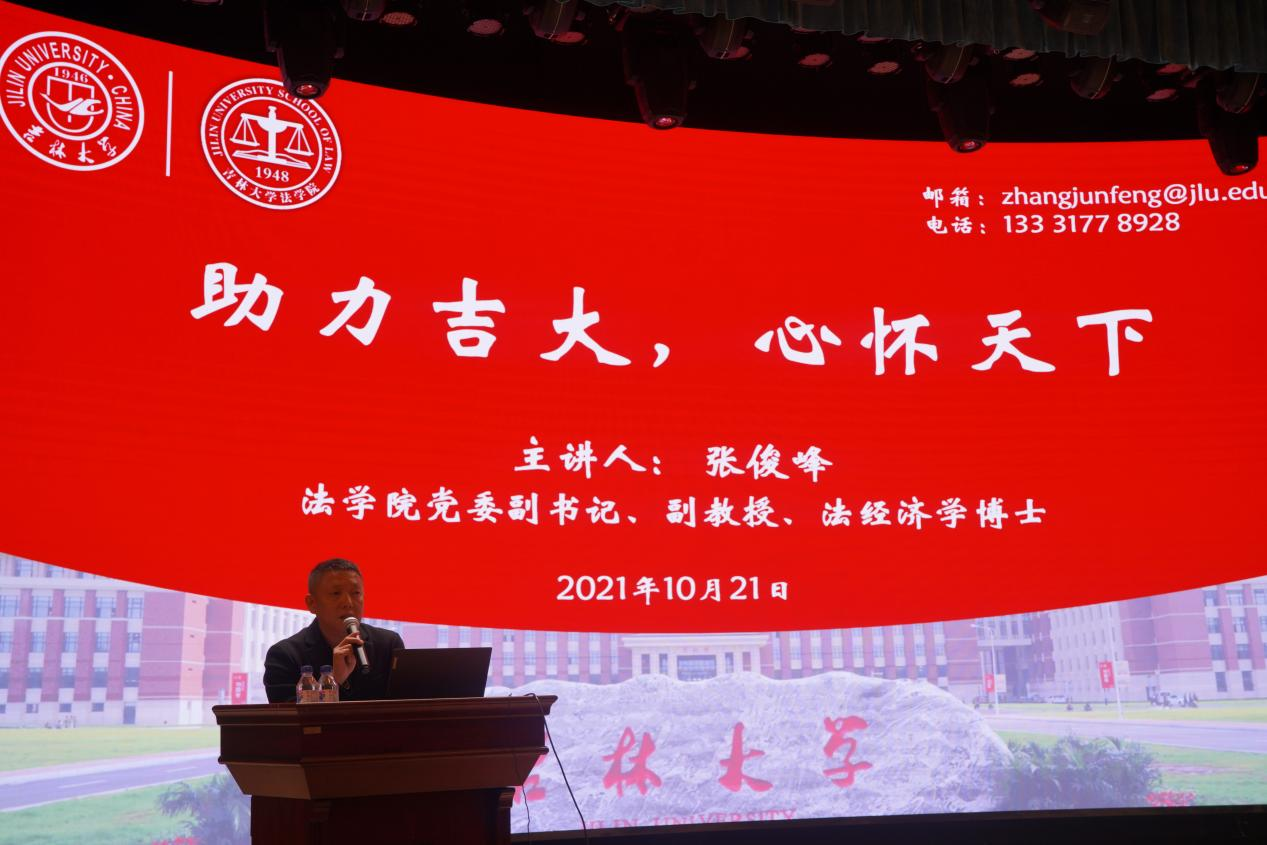 2021年10月21日晚,太阳成集团tyc9728在经信报告厅举行2021级研究生入学教育。法公司党委副书记张俊峰以“助力吉大,心怀天下”为题,就校史教育、国际形势教育、新生思想政治教育、国家宗教政策以及太阳成集团tyc9728研究生日常管理工作等内容与各位进行了同学分享和交流。