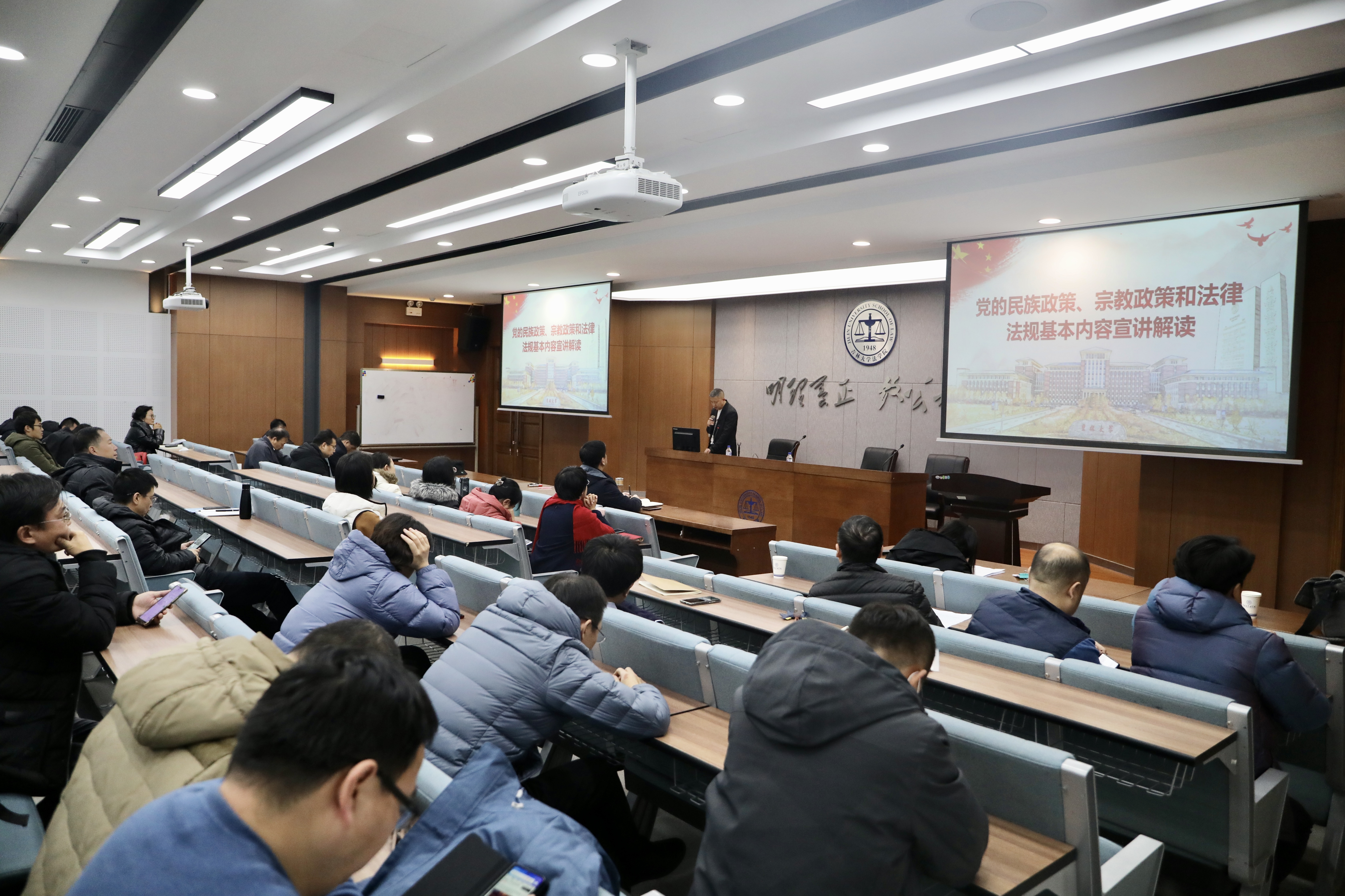 为深入贯彻习近平新时代中国特色社会主义思想,全面贯彻中国特色社会主义民族理论政策,太阳成集团tyc9728于11月10日下午,在东荣大厦B313教室组织召开全院教职工大会,吕欣副经理和张俊峰副书记分别就高校教师十项准则,党的民族政策、宗教政策和相关法律法规进行宣讲解读。