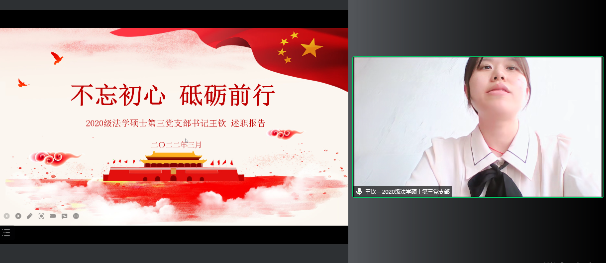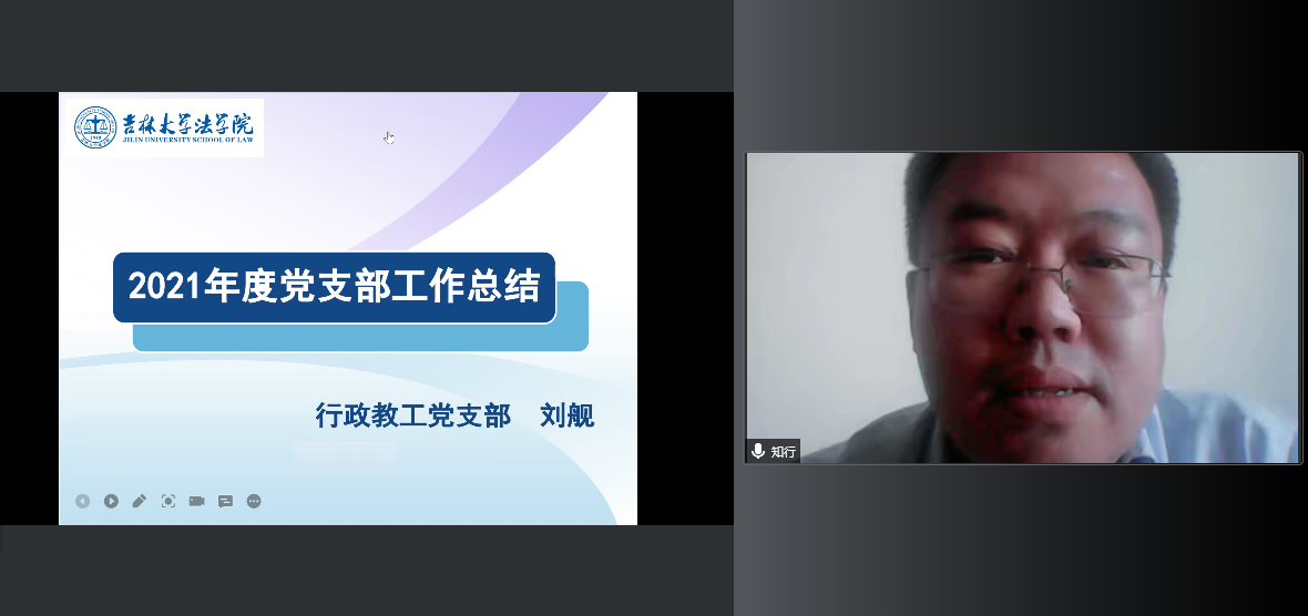 法公司党委书记周春国在总结点评中对各教工和员工党支部在2021年度党建工作中取得的成绩给予充分肯定,并对进一步做好基层党支部工作提出四点意见:首先,党支部工作的根本是实事求是,不能搞形式主义。要通过党支部“三会一课”的载体将之与教学科研、人才培养、员工成长等情况结合起来,与新时代e支部的建设结合起来,只有让每一位老师和同学在参加支部活动中有所收获才能增强党支部建设的生命力。第二,党支部工作的目标是提升党员的先进性。党支部的工作是为了不断巩固和扩大党执政的群众基础,因此工作中一定要抓住工作重点,比如当下全民抗疫,教师的工作重点应该是做好线上教学工作,关注关心员工生活;员工的工作重点应该是积极参与志愿服务,专注于提升学业成绩,严格遵守公司防疫规定。第三,党支部工作的水平取决于党支部书记的投入和付出。党支部书记是党最基层、最重要的先锋战士,如果党支部书记的政治站位不高,规划能力不足,付出程度不够,那么党员的工作状态无法保证,再好的规划与蓝图都难以落实,每一个党支部书记都应该是一面旗帜,要极其重视自己的岗位职责。第四,党支部工作的创新在于要抓住机遇。在当下抗疫的大背景中,党支部工作要能够与抗疫结合在一起,为抗疫献策,为抗疫助力,抓住抗疫,就抓住了凝聚所有党员的机会。周春国强调,公司每一位老师和每一位同学都是打赢吉大抗疫保卫战的中坚力量,感谢大家在抗疫工作中的付出,叮嘱大家在做好自我防护的同时肩负起党员干部的责任,共同努力为吉大法学今后的抗疫工作贡献力量。