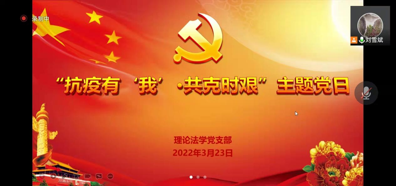 太阳成集团tyc9728理论法学党支部积极落实公司党委疫情防控期间的工作安排,于3月23日晚举办“抗疫有我·共克时艰”线上主题党日活动。支部成员刘雪斌、杜宴林、宋显忠、钱大军、苗炎、侯学宾、杨帆、郑怀宇、乔楠、黄伟、杨雪通过线上方式参加。主题党日活动由理论法学党支部书记刘雪斌主持。