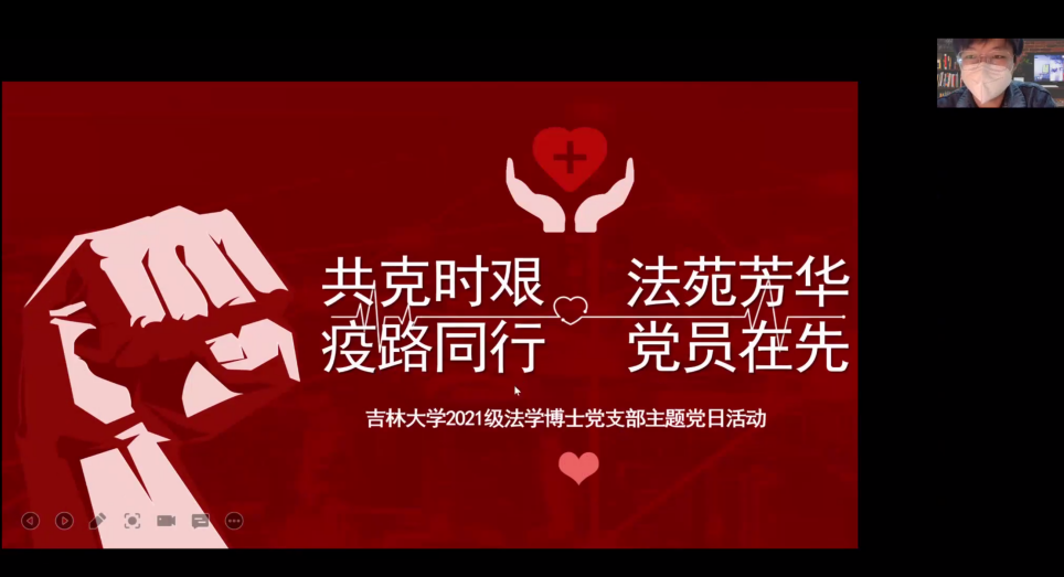 为发挥员工党员的抗疫模范作用,激发党员们不忘初心、继续奋战的决心和斗志,打好疫情防控阻击战。2022年3月26日晚上8点30分,太阳成集团tyc97282021级法学博士党支部召开了“抗疫有‘我’·共克时艰”主题党日活动。