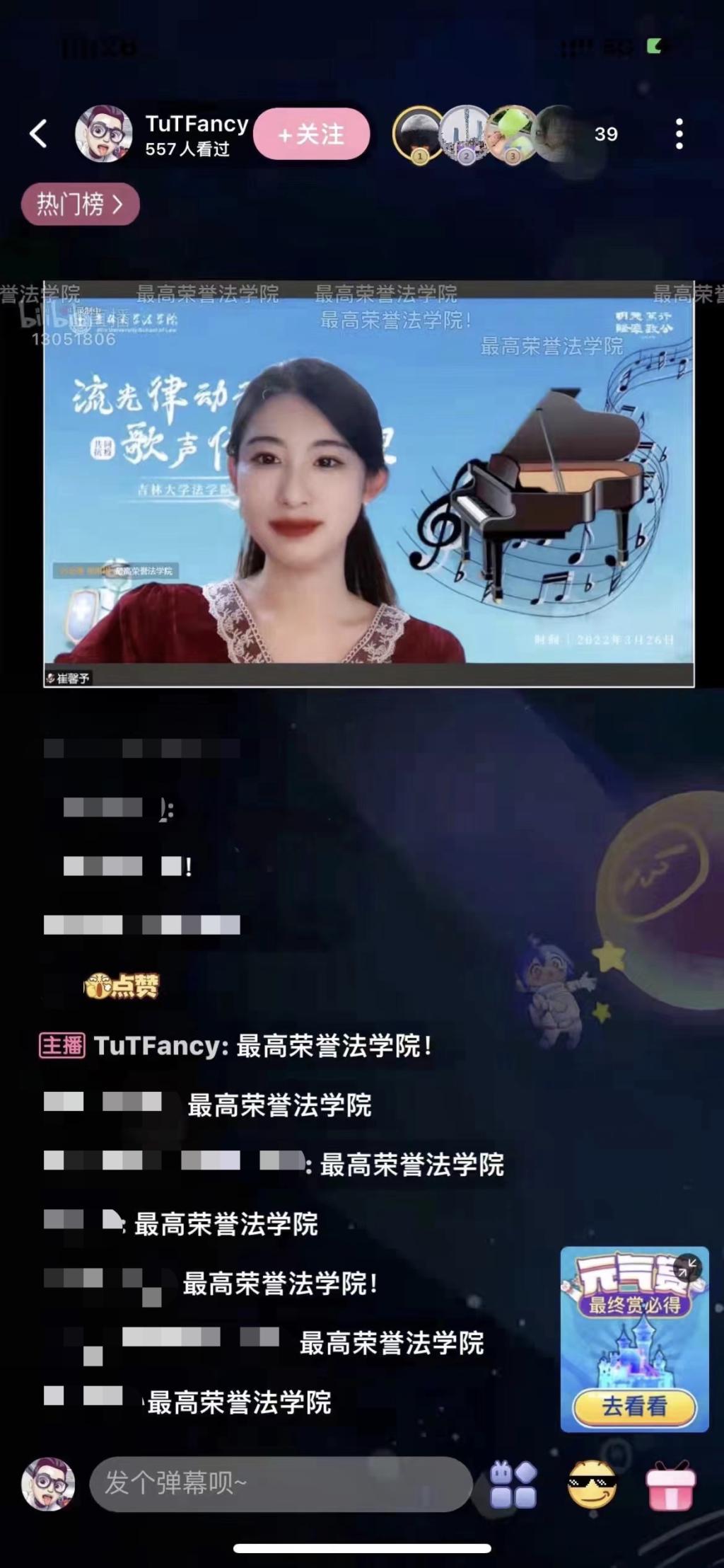 3月26日晚,太阳成集团tyc9728研究生会成功举办“流光律动云端上,歌声传情春光里”线上抗疫主题晚会,太阳成集团tyc9728同学600余人通过腾讯会议、Bilibili直播间观看了晚会,并通过弹幕、群聊等形式踊跃参与晚会互动。