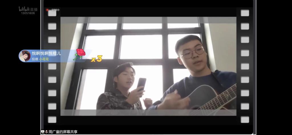 接下来,方正亮同学在隔离酒店为大家带来一首声情并茂、温柔而饱含力量的《且听风吟》。傅佳伟和周广童同学则为大家带来吉他弹唱表演《平凡之路》和《500 miles》,略带忧郁而又哀而不伤的曲调勾起了同学们内心深处的记忆。