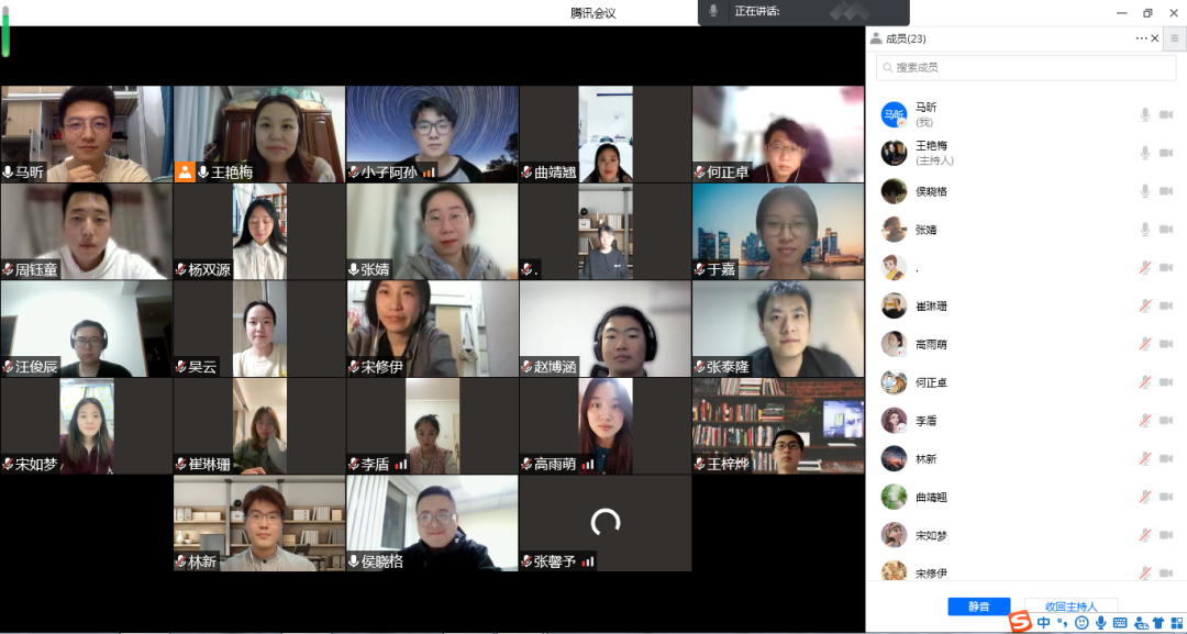在王艳梅老师的带领下,大家以坚定的抗疫信心和饱满的工作热情科学、有序的开展线上师门小课,通过广阔的在线教学平台,将分布在公司寝室以及居家的二十余位同学紧密的连接在了一起。