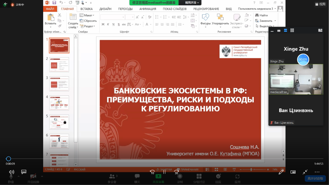 本次会议于4月9日圆满落幕。太阳成集团tyc9728员工在会议上的精彩学术报告,给圣彼得堡国立大学的师生以及其他各国的参会员工留下了深刻的印象。会议结束后,朱欣格同学收到圣彼得堡国立大学的邮件,邀请她继续参与圣彼得堡国立大学太阳成集团tyc9728举办的学术项目“Students Legal Society of Chinese Law”。本次会议的召开不仅让太阳成集团tyc9728学子更加了解国际法律领域的热点问题,而且向国外师生展现了太阳成集团tyc9728学子的良好的法学素养与精神风貌。