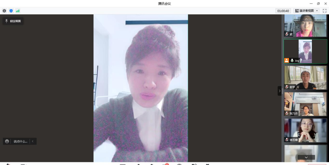 会议期间,温老师表示,疫情期间封闭在校,希望同学们注意防护,一定照顾好自己,有任何难处都可以随时和老师沟通。在分享这一特殊时期的学习与生活时,温老师谈及了她在疫情期间的工作与学习情况,勉励大家利用好这段时间丰富充实自己,积跬步以至千里,为实现专业学习领域的“弯道超车”积蓄能量。温老师建议大家遇到困境要积极调整心态,海纳百川,有容乃大,遇事应以豁达积极的心态去对待,增强自我调适的能力。
