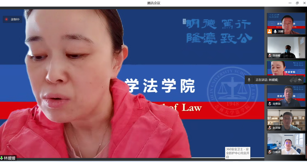 林媛媛围绕三点学习体会进行了交流。一是继承优良传统,赓续红色血脉。通过强化德润学堂特色育人体系,加强思政教育,培养习近平法治思想深度学习者、践行者和有力的传播者。二是明德笃行,德法兼修。通过完善学业发展指导体系,构建实践教学发展体系,培养法治科研人才。三是严爱相济,润己泽人。坚持以员工为本,提升暖心工程工作内涵。在员工疫情防控安全管理方面,坚持以保障员工的身心健康为首要任务,守护着员工的成长成才。