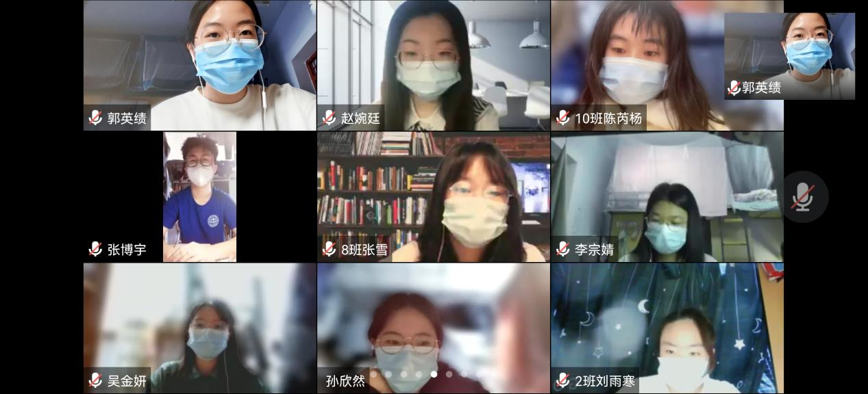 同学们纷纷就身边的抗疫故事进行了交流与分享。本科生2020级党支部预备党员郭英绩同学回忆了封寝期间的点点滴滴,她为大家讲述了寝室楼楼长、各楼层楼层长的日常工作。小至每日的一日三餐和生活物资的配送,大至全体人员的管理,各位负责人尽职尽责,用自己的付出保障了宿舍楼的正常运转。温添羽同学谈到,在宿舍楼封闭管理期间,同学们的表现更让她感动。同学们严格遵守疫情防控要求,更有员工挺身而出担任志愿者,他们牺牲自己的休息时间,为同学服务,同心抗疫,担当尽责。尤其在宿舍楼成立临时党支部之后,在基层党组织的带领下,全体党员共同抗疫,使工作进行地更加有序高效。颜雯婧同学则分享了家乡让她感动的故事,她讲到,在家乡疫情最严重的时候,城市街道上空无一人,旁边的楼宇里灯火通明,居家隔离的居民们通过窗户看到一支支救援队奔向工作场所,这种逆行令她印象十分深刻,十分感动。广大医务人员们冲锋在前,不惧危险,最终取得了抗疫的胜利。