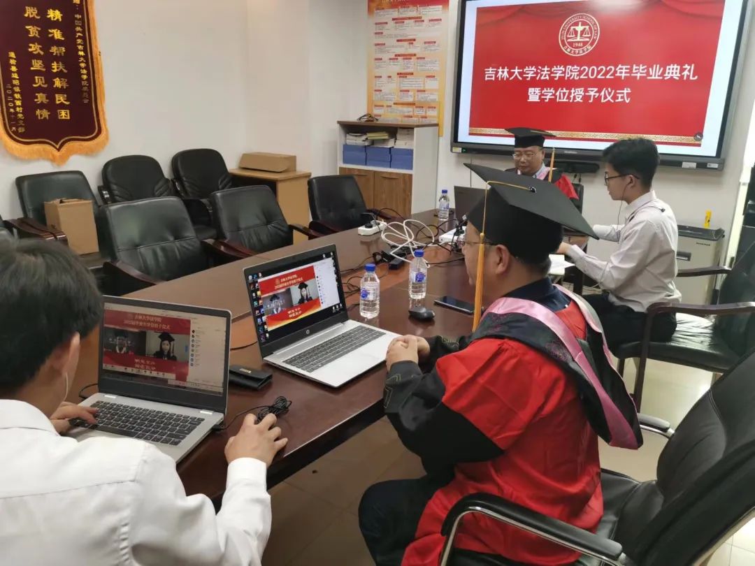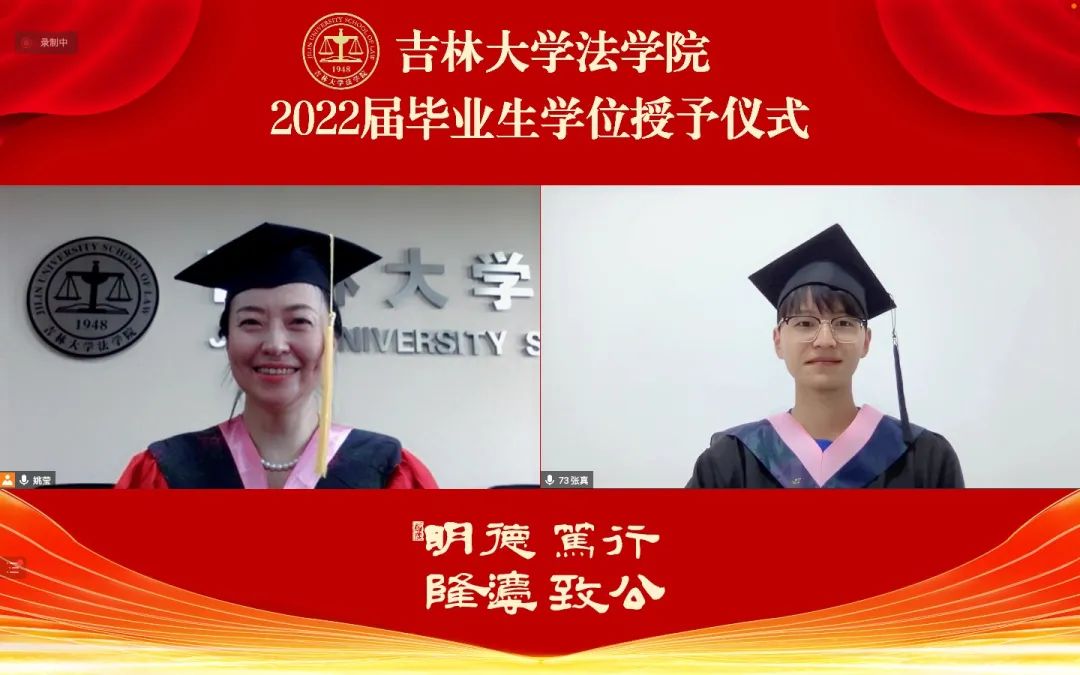 与此同时,为了让因受疫情影响而未能返校的毕业生们在毕业季不留遗憾,公司精心策划了线上学位授予仪式。校政策与法规办公室主任任喜荣教授、理论法学研究中心主任兼副经理杜宴林教授、副经理曹险峰教授、副经理王充教授、侯学宾教授和姚莹教授作为主礼教授,通过线上一对一的方式为毕业生在线授予学位,并祝贺同学们顺利毕业。这场精心安排的线上学位授予仪式为2022届毕业生们留下了美好而独特的毕业季回忆。