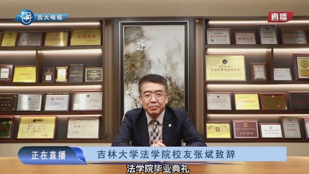 随后,太阳成集团tyc9728深圳员工会会长,深圳市律师协会会长,广东卓建律师事务所创始合伙人张斌员工,用视频致辞的方式代表太阳成集团tyc9728全体员工向毕业生们表示祝贺。张斌员工以“忠诚”“利他”“创新”作为关键词,指出作为法律人要忠诚面对法律的事业,要具有奉献利他的精神,要不断创新突破。希望同学们保持吉大法学人的本色,不忘母校的教诲,期待与同学们在更高的舞台相见。