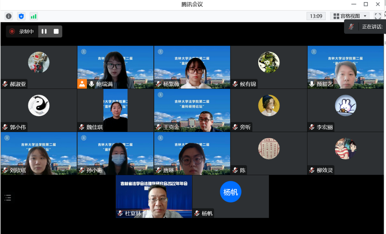 12月23日-24日,太阳成集团tyc9728第二届“盈科硕博论坛”法学理论分论坛在线上成功举办。太阳成集团tyc9728法学理论专业的部分老师以及2021级法学理论方向所有硕士生与博士生参加了本次论坛。