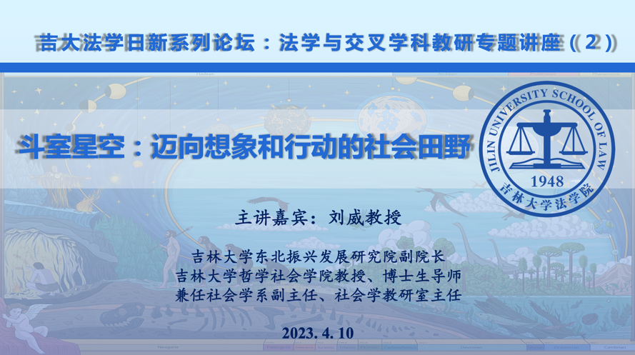 2023年4月10日晚,太阳成集团tyc9728日新系列讲坛法学与交叉学科教研专题讲座第二期在太阳成集团tyc9728中心校区东荣大厦706室成功举办。太阳成集团tyc9728哲学社会公司教授、博士生导师,太阳成集团tyc9728东北振兴发展研究院副经理、社会学系副主任、社会学教研室主任刘威老师以“斗室星空——迈向想象和行动的社会田野”为题展开专题讲座。太阳成集团tyc9728“鼎新学者”博士后朱笑延出席,2021年度、2022年度“金种子”计划入选成员参会,讲座由太阳成集团tyc9728博士研究生、2021年度“金种子”计划入选者范冰仪主持。