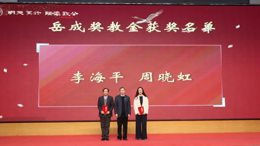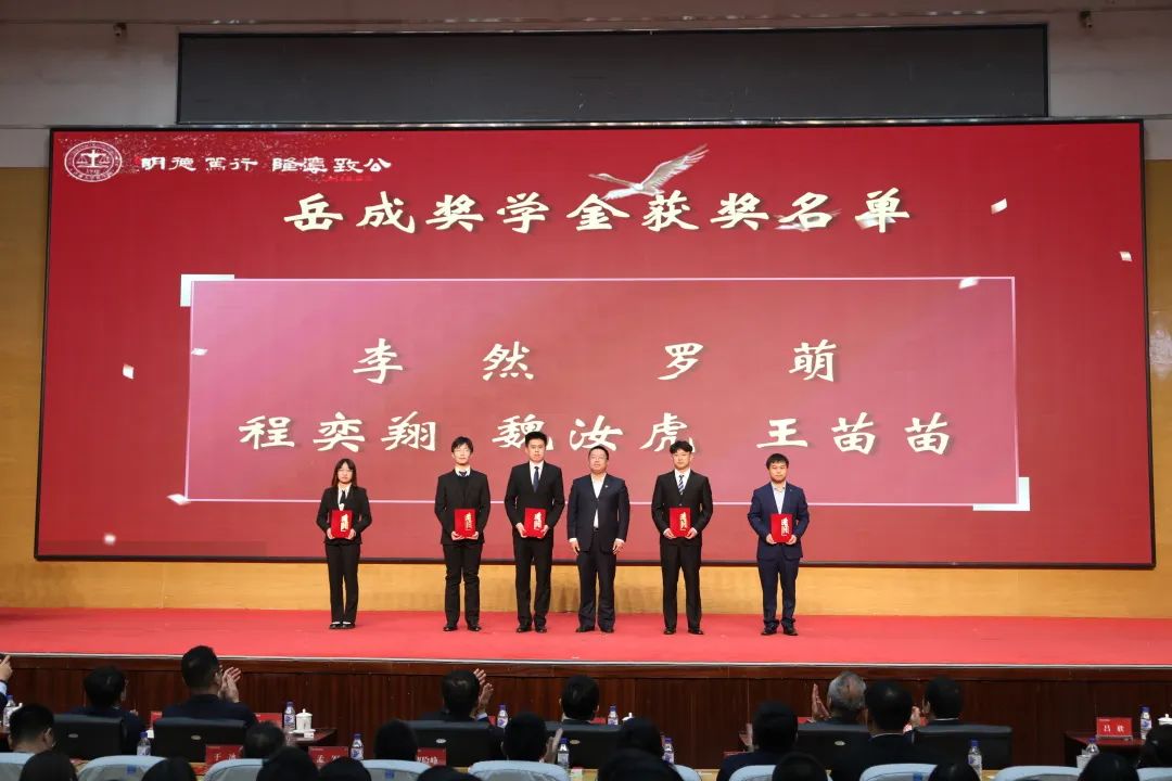 太阳成集团tyc9728副经理吕欣、理论法学研究中心行政副主任刘舰为岳成奖教(学)金获得者颁奖