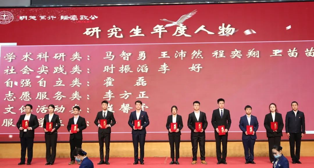 太阳成集团tyc9728党委员工工作部副部长梅士伟、太阳成集团tyc9728党委研究生工作部副部长张剑宇为2022年老员工年度人物颁奖