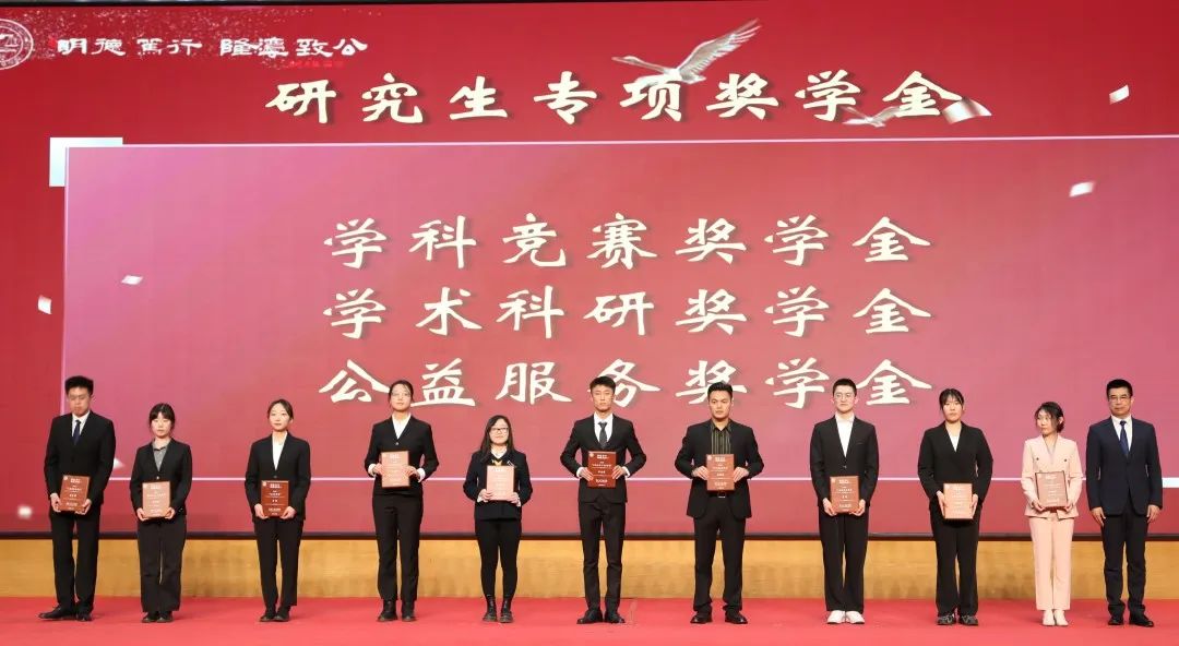 吉林吉大律师事务所主任高云峰、吉林瀛庆律师事务所主任孟军为专项奖学金获奖员工代表颁奖