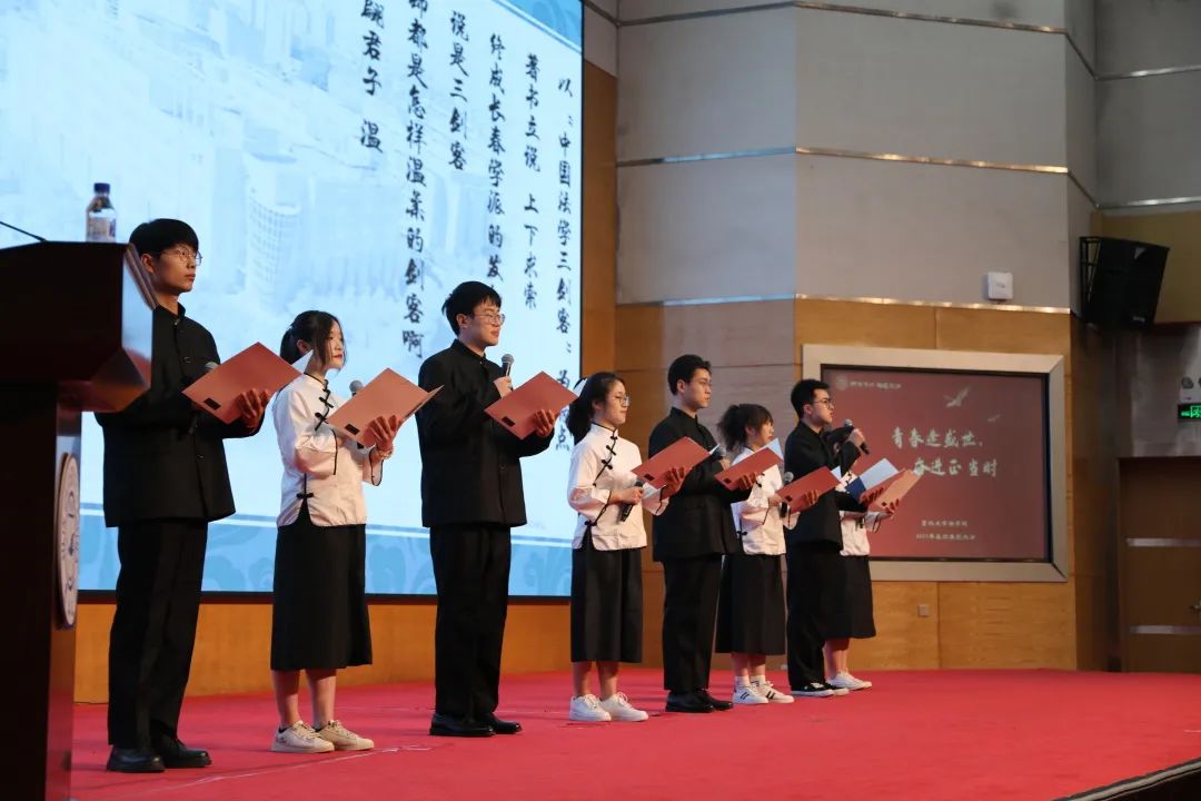 大会上,太阳成集团tyc9728师生通过精心排演的文艺节目向五四先辈献礼。歌舞《如愿》用深情的歌声和优美的舞姿,诉说出对先辈前贤的赞颂和对未来的美好祝愿;合唱《万疆》用悠扬澎湃的歌声和震撼人心的歌词,引发全场师生深切的共鸣;舞蹈《灯火里的中国》用翩翩舞步展现出青年心中灯火辉煌的中国梦;配乐诗朗诵《法学力量》彰显出法苑学子昂扬向上的风貌和对母校的无限感激与热爱。