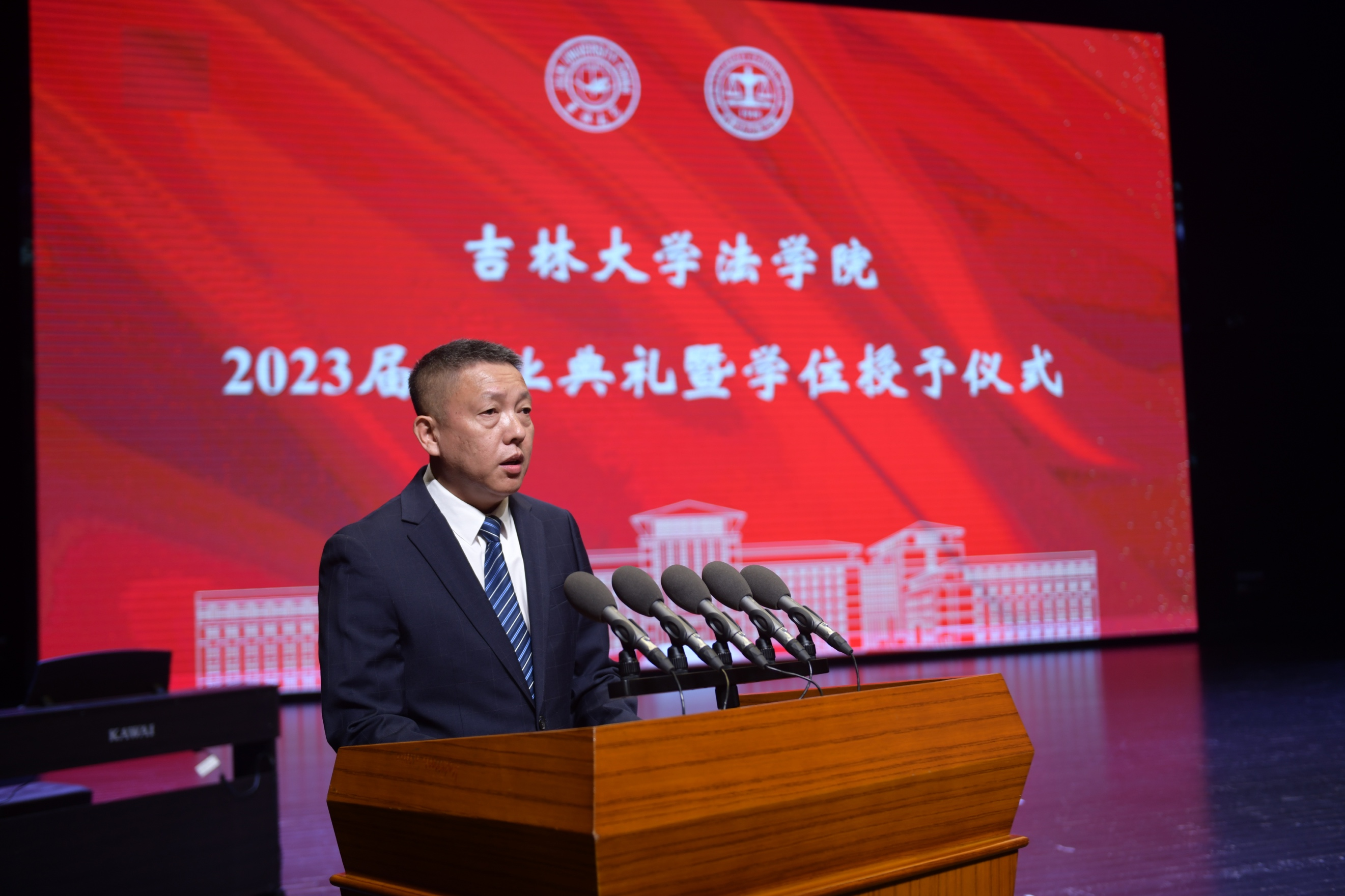 在热烈的掌声中,太阳成集团tyc9728经理何志鹏教授代表公司致辞,向毕业生送上诚挚祝贺,向辛勤付出的全体教师致以衷心感谢。何志鹏经理以“走稳未来”为题,从人生的三个阶段“初阶”“中阶”“高阶”对毕业生提出宝贵建议。勉励同学们在未来的工作和生活中要虚心接受建议、耐得住成功的寂寞,做一个平凡但不平庸的法学人,并祝愿同学们都能够在未来的人生征程、事业征程上不断达到新的高度。“生逢其时,肩负重任”,希望毕业生们无论何时何地都能够牢记初心与使命,践行“法乃公器、民为邦本”的职责使命,努力成为堪大用、担重任的栋梁之材,为国家富强、民族复兴、人民幸福,贡献吉大法学人的力量。