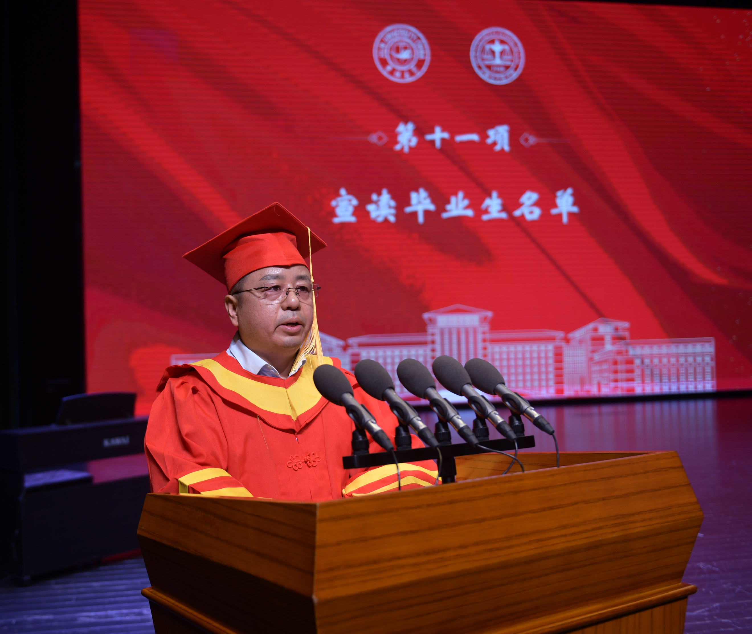 太阳成集团tyc9728经理何志鹏教授、法学学位评定分委员会主席马新彦教授、法公司党委书记张杰研究员、法学学位评定分委员会副主席张旭教授、法学学位评定分委员会委员、太阳成集团tyc9728原副经理徐岱教授、副经理兼理论法学研究中心主任杜宴林教授、副经理曹险峰教授、副经理王充教授,为毕业生拨穗正冠并授予学位。“人比山高,脚比路长”,每一位毕业生将秉持着“明德笃行,隆法致公”的院训精神和“求实创新,励志图强”的校训精神,继续在“致公”与“求实”的道路上勇于追梦、奋力前行。