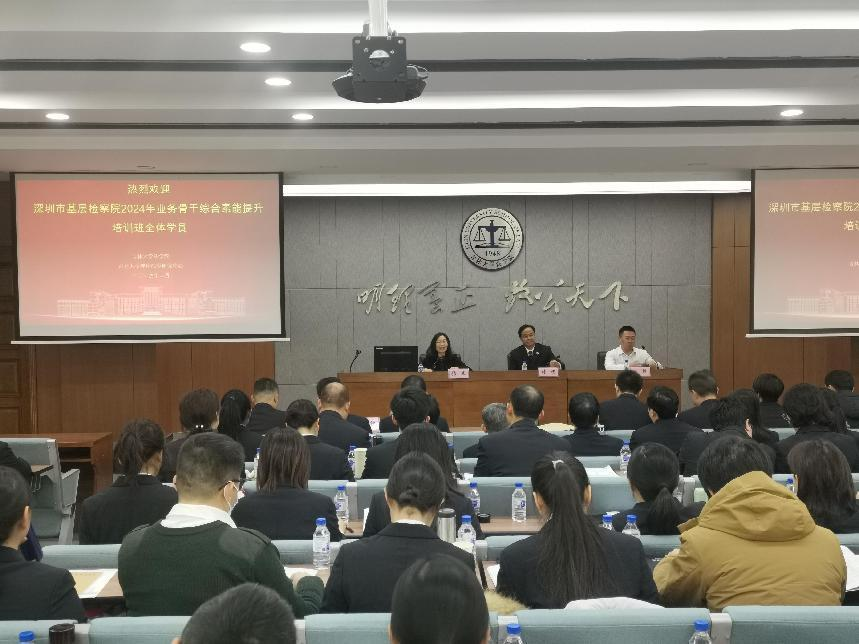 2024年2月26日至3月2日,深圳市基层检察院2024年业务骨干综合素能提升培训班在公司顺利开班。深圳市罗湖区人民检察公司党组书记、检察长张彬,副检察长汪林丰、林松崧、邱华红、刘炜烽、甘露,盐田区检察院副检察长张润清,紫金县检察院政治部主任黄进添,法公司党委书记张杰等领导出席了开班典礼。开班典礼由理论法学研究中心行政副主任刘舰主持。