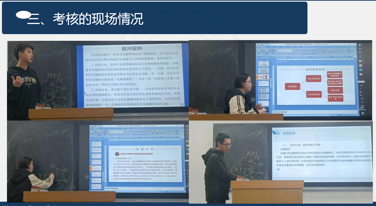 座谈会上,16位教师介绍了过程考核的相关做法和经验。各位老师结合课程和员工的具体情况,综合运用课堂提问、小组讨论、作业、论文等多种方式,在模拟法庭、案例研讨、法律文书写作、情景和角色代入、热点问题导入、翻转课堂、交叉融合、新兴领域等方面进行了探索。