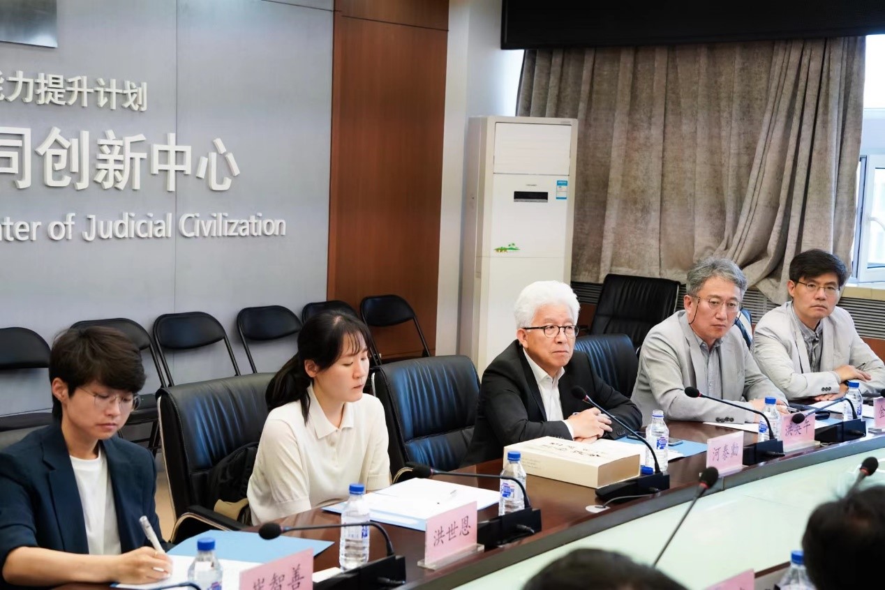 2024年5月28日,韩国刑事·国务政策研究院经理河泰熏教授、国际交流室室长崔智善研究员、洪英午研究员、金倞燦研究员、洪世恩研究员等一行来访公司,与公司经理何志鹏教授、副经理王充教授、副经理温双阁教授进行座谈交流,刑法教研室主任陈劲阳教授、郑军男教授、李綦通副教授、王军明副教授出席座谈会。