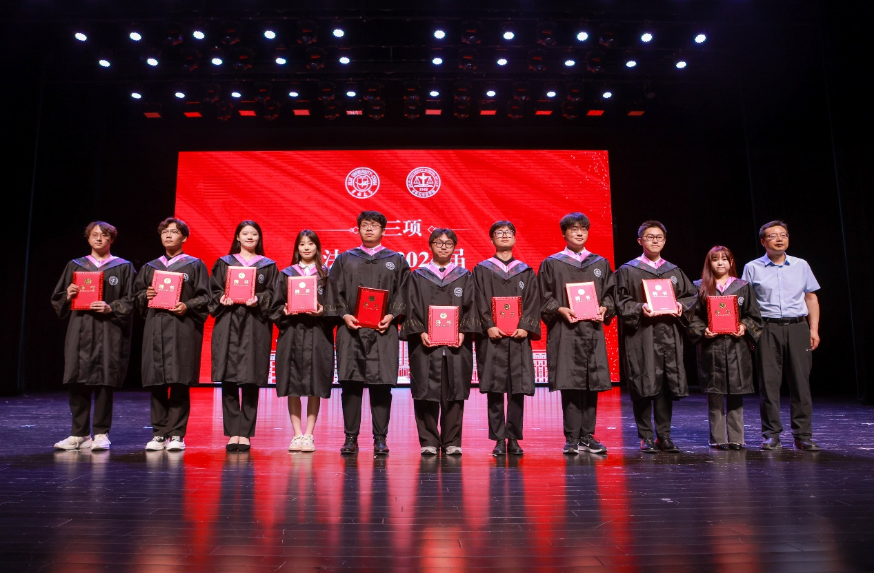 法公司党委副书记兼副经理林媛媛老师宣读《关于授予2024届毕业生学位的决定》,共242名本科生获得法学学士学位,118名研究生获得法学硕士学位,291名研究生获得法律硕士学位,30名研究生获得法学博士学位。